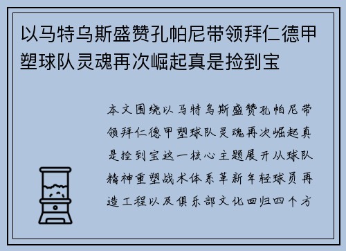 文章摘要:战国安戴帽萨里奇成海牛队史第8位上演帽子戏法的球员,是海牛队历史上的一个重要时刻。本文将围绕这一事件展开,详细探讨萨里奇在海牛队历史上的地位、帽子戏法的意义、萨里奇的个人表现以及他对海牛队未来的影响。通过四个方面的阐述,全面呈现这一足球事件的深远影响,并对萨里奇的成就做出系统分析。首先,我...